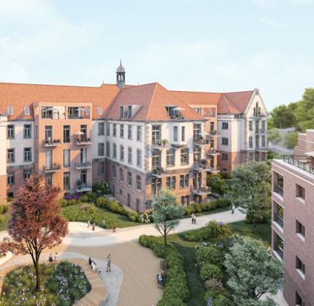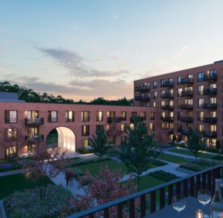 25.10.2017 | Ahrensburg LindenhofMit der Entstehung von insgesamt 62 Mietwohnungen sowie Dienstleistungsflächen, wird das Areal des einstigen „Hotel Lindenhof“ im Sinne seines Ursprungs wieder in den Lebensmittelpunkt der Menschen gerückt - als heimatliches Domizil, geselliger Treffpunkt und zur Versorgung des täglichen Bedarfs. Die verkehrsgünstige Lage in unmittelbarer Nähe zum Bahnhof sowie die nahegelegene Innenstadt von Ahrensburg, lassen keine Wünsche offen. So fügt sich das moderne Gebäude mit den verwendeten Materialien nahtlos in die Umgebung ein und bietet den künftigen Bewohnern im begrünten Innenhof Freiraum und Platz für Erholung.