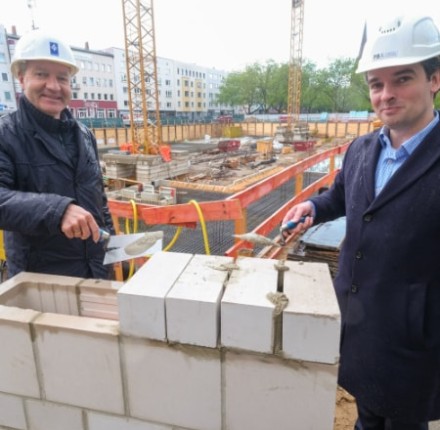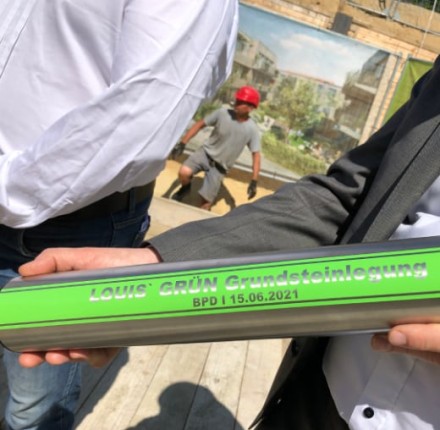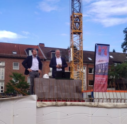 12.07.2023 | Heinrich 45Klimaneutrale Gisoton-Steine, ein nachhaltiges Energiekonzept und ein motiviertes Team sind gute Voraussetzungen für ein tolles Neubauprojekt im zentralen Hamburg-Bramfeld. Die Rohbauarbeiten schreiten planmäßig voran und kurz vor Vollendung der Sockelplatte haben wir in der vergangenen Woche den Grundstein gelegt.