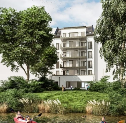 Direkt am Mittelkanal entstehen Eigentumswohnungen zwischen urbaner Geschäftigkeit und einladenden Naherholungsmöglichkeiten am und auf dem Wasser.