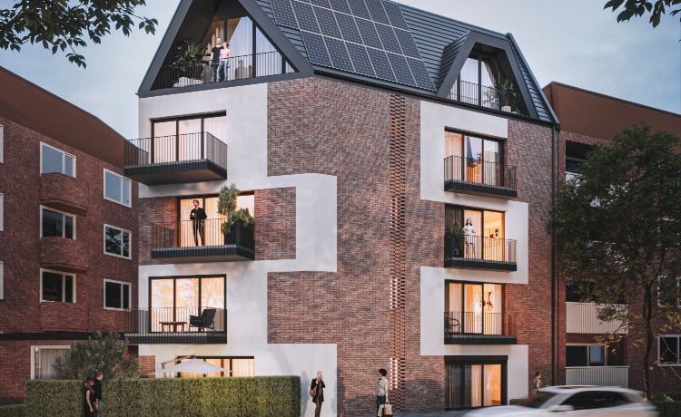 Die klare, zeitgemäße Architektur fügt sich harmonisch in das gewachsene Umfeld von Winterhude ein.