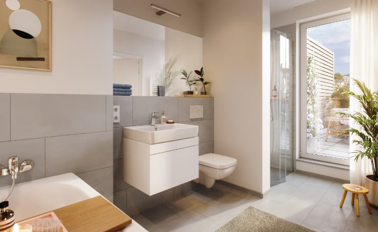 - Bäder mit bodengleichen Duschen und Handtuchheizkörpern