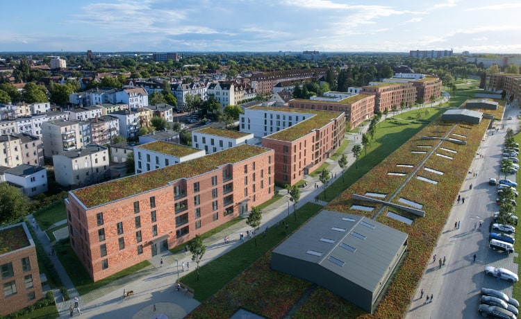 Im Quartier NEUE MEILE entsteht ein einzigartiges Ensemble aus modernen Eigentumswohnungen und charmanten Townhouses - mitten im aufstrebenden innerstädtischen Quartier auf dem Gelände des ehemaligen Lübecker Güterbahnhofs.