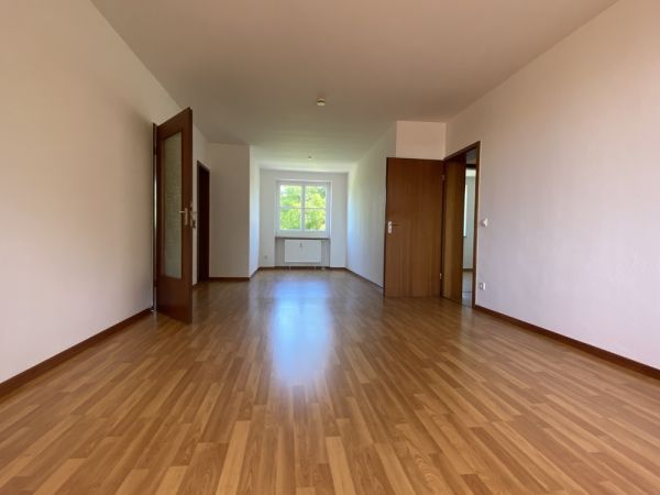 Die Wohnfläche von ca. 80 m² erstreckt sich auf 2,5-Zimmer, Bad Küche und Loggia. Über den Eingangsbereich gelangt man direkt in das großzügige Wohn- Esszimmer. Dank der großen Fenster auf beiden Seiten ist der Raum hell und freundlich. Hiervon abgehend liegt die Loggia, welche dank Süd-Ausrichtung sonnige Stunden im Freien verspricht.