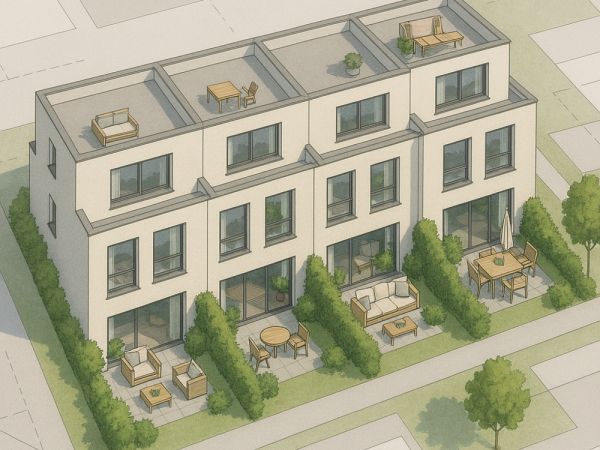 Die Reihenhäuser werden nach dem KfW-55-Standard errichtet.