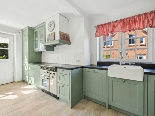 Das Herzstück des Hauses ist das gemütliche Wohnzimmer mit Kamin – ein perfekter Ort für entspannte Stunden. Hochwertige Echtholzdielen und moderne Fliesen unterstreichen den gepflegten Gesamteindruck. Die stilvolle Küche im Landhausstil überzeugt mit einem Induktionsherd und einem Backofen von Falcon – ein echtes Highlight für Kochliebhaber. Im Obergeschoss befinden sich zwei geräumige Schlafzimmer sowie ein geschmackvoll ausgestattetes Badezimmer mit elektrischer Fußbodenheizung.