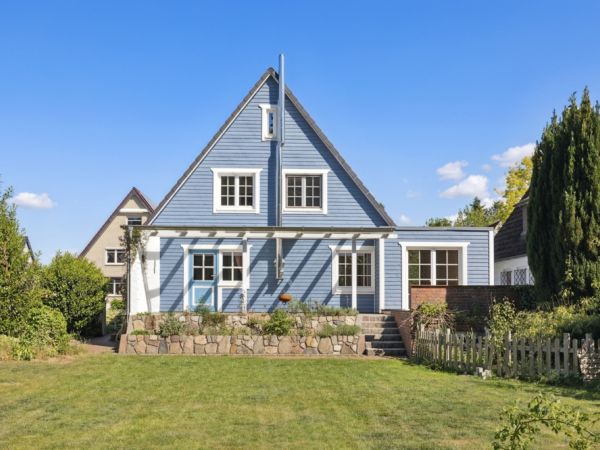 Im idyllischen Hamburg-Langenhorn präsentiert sich dieses außergewöhnliche Einfamilienhaus im beliebten Schwedenstil. Die blaue Holzfassade in Kombination mit weißen Sprossenfenstern und einem liebevoll angelegten Garten verleiht dem Haus eine behagliche und einladende Ausstrahlung. Das großzügige Grundstück umfasst ca. 801 m², ist nach Westen ausgerichtet und bietet mit seiner geschützten Lage viel Privatsphäre sowie reichlich Platz für Erholung im Grünen.