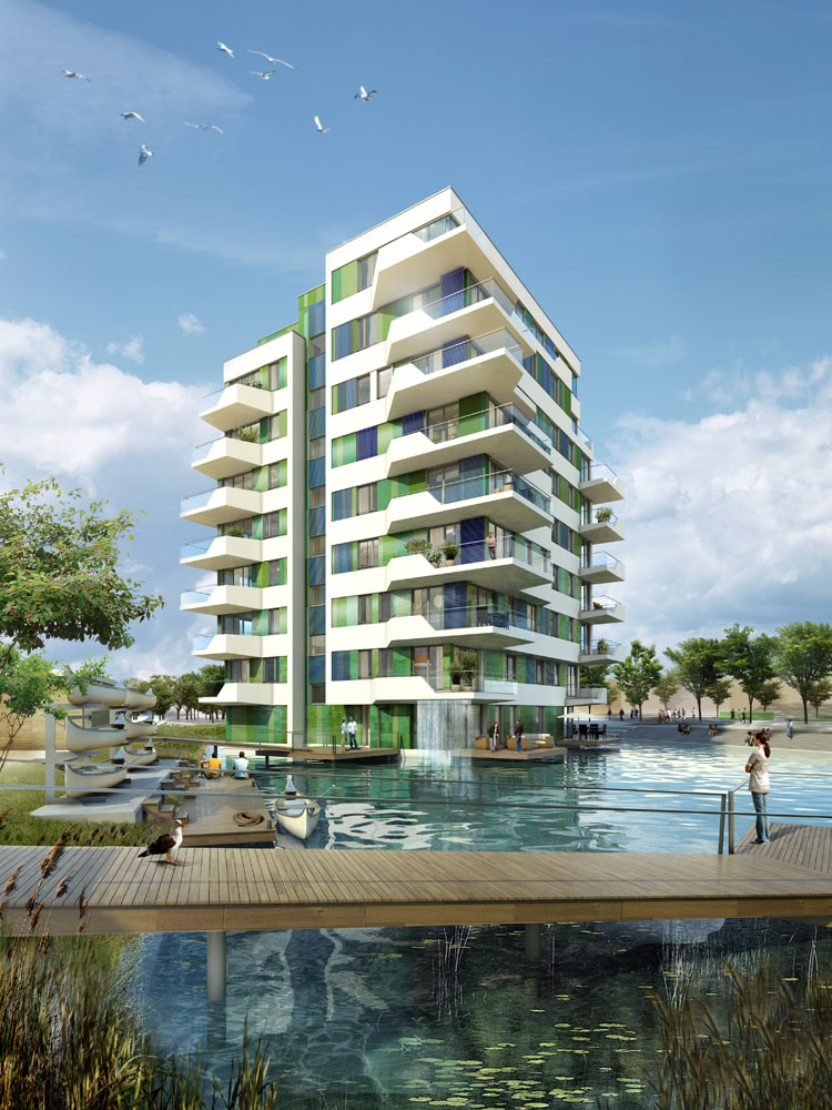 Leben & Arbeiten Seite an Seite. Wohnen & Wirken in einem Haus. Erfolg & Gelassenheit zuhause. Im Zuge der IBA und der IGS entstand dieses individuelle Mehrfamilienhaus mit 34 Eigentumswohnungen und wahr gewordenen Visionen.