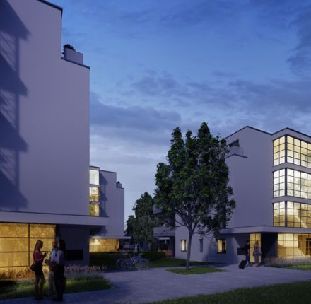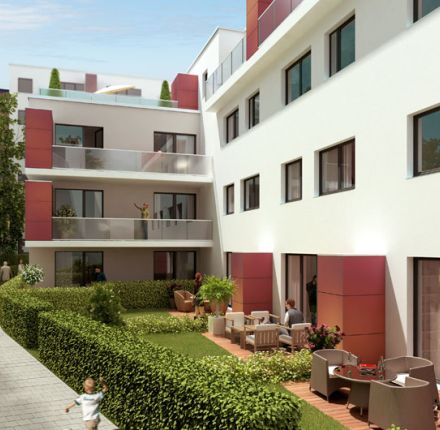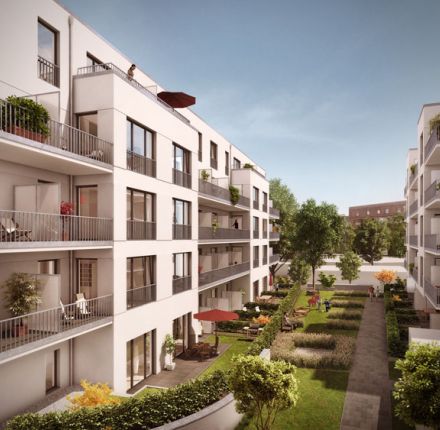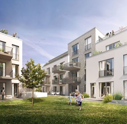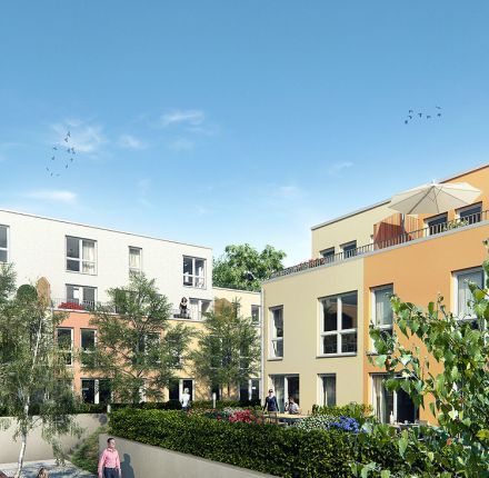 Betreten erwünscht! Die Wohnanlage mit 68 modernen und hochwertigen Eigentumswohnungen besteht aus zwei Mehrfamilienhäusern und einem grünen Innenhof. Alle Wohnungen haben einen direkten Bezug zum Innenhof – über großzügige Balkone, Terrassen oder den eigenen Garten. Mit 37 bis 114 Quadratmeter Wohnfläche bieten sie Menschen in jeder Lebenslage passenden Wohnraum.