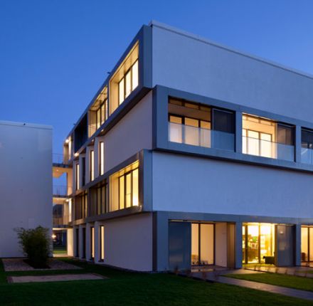 In ruhiger und grüner Nachbarschaft direkt am Kurpark wurden insgesamt sechs Maisonette-Wohnungen, in einem architektonisch ansprechenden Mehrfamilienhaus, gebaut.