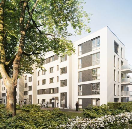 Quartier 21 - Wohnen am Park, Hamburgs Vorzeigequartier in Hamburg-Barmbek, hat INSTONE REAL ESTATE zwei Mehrfamilienhäuser mit 63 Stadtwohnungen und Townhouses realisiert. Eine dem historischen Umfeld angepasste Klinkerfassade, begrünte Dächer und ein vom Landschaftsarchitekten modellierter Garten bieten ein Wohlfühlambiente, das seinesgleichen sucht.